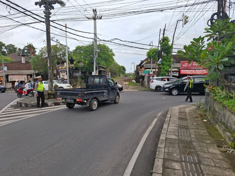 ABIANSEMAL – Guna mengantisipasi kepadatan arus lalu lintas pada arus balik akhir pekan, Personel Polsek Abiansemal melaksanakan kegiatan pengaturan lalu lintas (gatur sore) di sejumlah titik rawan kemacetan di daerah hukum Polsek Abiansemal, Minggu (28/12/2025) sore.