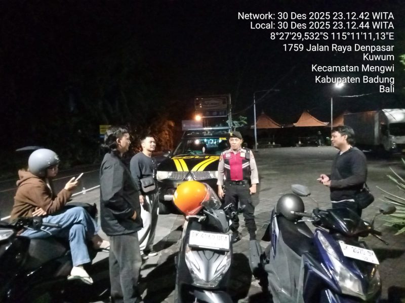 Mengwi – Guna memberikan rasa aman dan nyaman kepada masyarakat, personel Samapta Polsek Mengwi melaksanakan patroli dialogis di kawasan Rest Area Desa Kuwum, Kecamatan Mengwi, Kabupaten Badung. Selasa (30/12/2025) malam