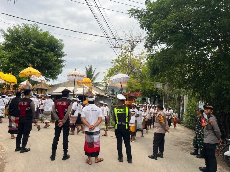 Dalam rangka menjaga situasi kamtibmas agar tetap aman dan kondusif, Bhabinkamtibmas Desa Lembongan Bripka I Wayan Suwistra bersama anggota Polsubsektor Lembongan, Babinsa, serta Pecalang Desa Adat Lembongan melaksanakan atensi dan pengamanan kegiatan Mekiis/Melasti menuju Segara Sakenan dari Pura Sakenan Desa Lembongan, yang merupakan rangkaian kegiatan piodalan. Sabtu, 3/1/2026