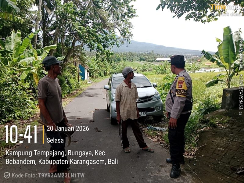 ​BEBANDEM – Upaya menciptakan situasi kamtibmas yang kondusif sekaligus mendukung program pemerintah dalam ketahanan pangan terus digencarkan oleh Polsek Bebandem. Pada Selasa (20/1/2026) pagi, Bhabinkamtibmas Desa Bungaya melaksanakan kegiatan Sambang Dialogis di wilayah Kampung Tempajang, Dusun Timbul, Desa Bungaya.