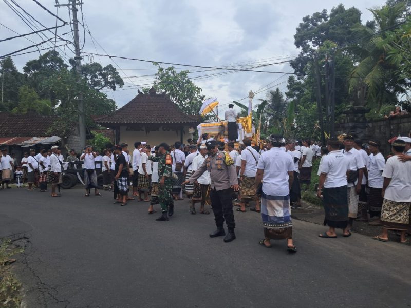 Dalam pelaksanaannya, Bhabinkamtibmas bersama unsur terkait melakukan pengaturan arus lalu lintas, pemantauan situasi sekitar lokasi upacara, serta koordinasi dengan pihak keluarga dan prajuru adat, guna mengantisipasi potensi gangguan kamtibmas selama kegiatan berlangsung.