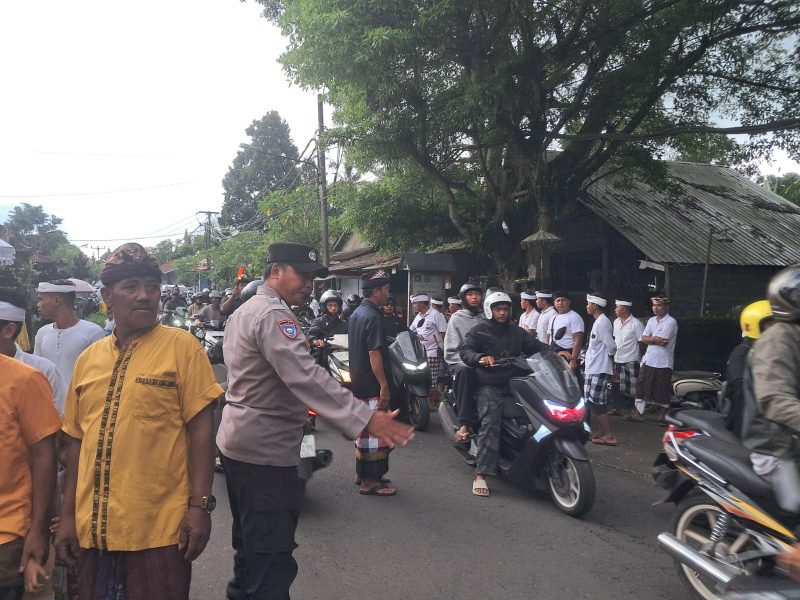 Dalam pelaksanaannya, Bhabinkamtibmas Desa Bungbungan bersama pecalang melakukan pengaturan arus lalu lintas di sekitar lokasi kegiatan, pengawasan jalur prosesi, serta memberikan imbauan kepada masyarakat agar tetap tertib dan mematuhi ketentuan selama kegiatan berlangsung.