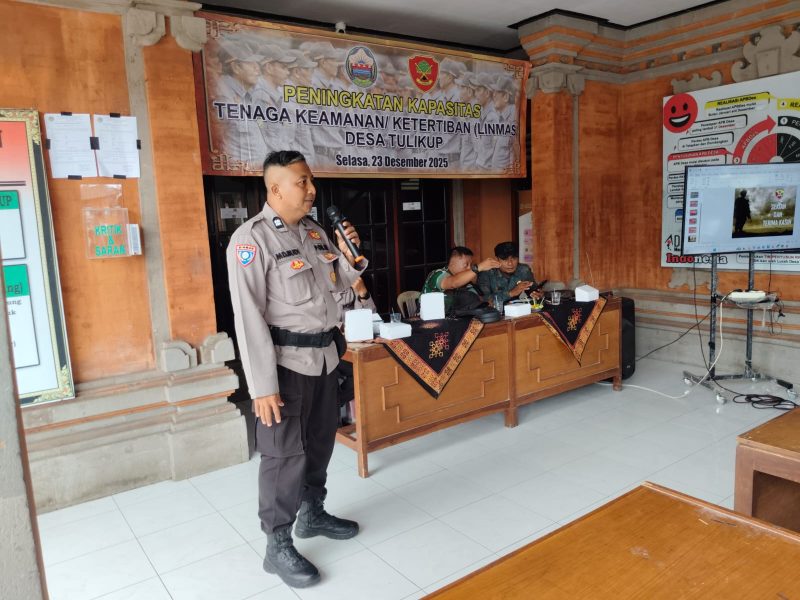Gianyar – Dalam rangka memperkuat peran tenaga keamanan dan ketertiban masyarakat di tingkat desa, Bhabinkamtibmas Desa Tulikup Aiptu I Wayan Astawa bersama Babinsa Desa Tulikup Serka I Wayan Suprata melaksanakan kegiatan peningkatan kapasitas tenaga keamanan/ketertiban Linmas di Desa Tulikup, Kecamatan Gianyar, Kabupaten Gianyar, Selasa (23/12/2025).