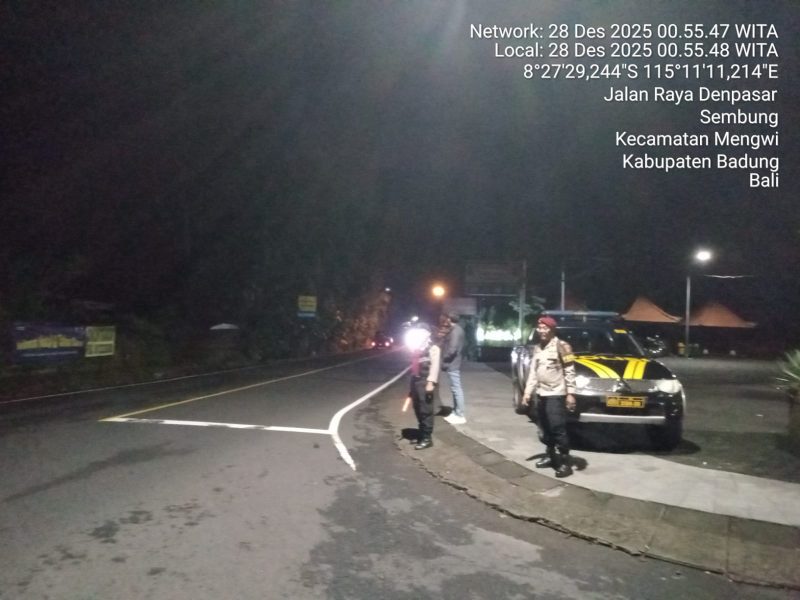 Mengwi – Guna menciptakan situasi kamtibmas yang aman dan kondusif, Polsek Mengwi melaksanakan patroli malam minggu di sejumlah titik rawan gangguan keamanan, Sabtu malam (27/12/2025) Patroli ini menyasar jalur utama, kawasan pemukiman, pusat keramaian, serta lokasi yang kerap dijadikan tempat berkumpul masyarakat.