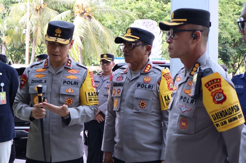 Badung – Kapolres Kawasan Bandara I Gusti Ngurah Rai, Kombes Pol. I Komang Budiartha, S.I.K., mendampingi Kapolda Bali Irjen Pol. Daniel Adityajaya, S.H., S.I.K., M.Si., meninjau Posko Terpadu Natal 2025 dan Tahun Baru 2026 di Terminal Domestik Bandara I Gusti Ngurah Rai, Senin (22/12/2025).