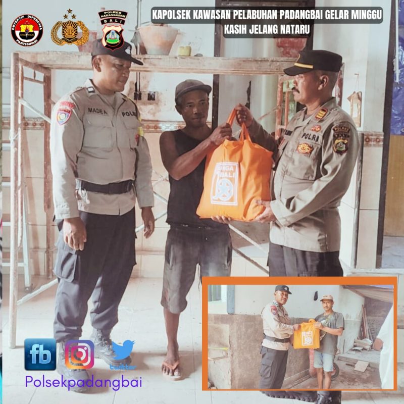Polda Bali – Polres Karangasen – Polsek Kawasan Pelabuhan Padangbai – Menjelang perayaan Natal 2025 dan Tahun Baru 2026 (Nataru), Kapolsek Kawasan Pelabuhan Padangbai AKP I Wayan Gede Wirya,S.A.P.,M.A.P, melaksanakan kegiatan Minggu Kasih bersama masyarakat, Minggu (21/12/2025).