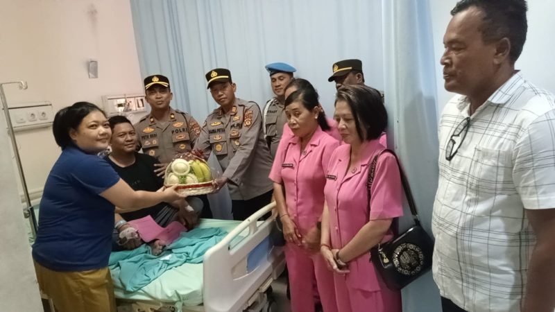 Sebagai wujud rasa kekeluargaan, kebersamaan dan kepedulian Kapolsek Kediri bersama staf besuk anggota Bhabinkamtibmas sedang opsname di RS Singasana Ds. Nyitdah, Kediri, Tabanan.