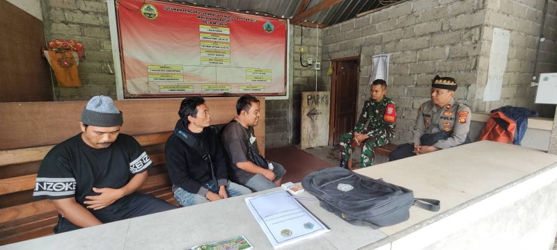 RENDANG – Kapolsek Rendang Kompol I Made Berata,SH,MH bersama pemandu lokal pendakian Gunung Agung yang ada di wilayah Besakih jalur Pura Pengubengan dan Taman Edelweis Temukus melaksanakan dialogis guna menjalin sinergitas dalam menjaga situasi kamtibmas dan memberikan himbauan agar menjaga keselamatan dan tetap hati-hati dalam mendaki gunung , jumat (26/12/2025).