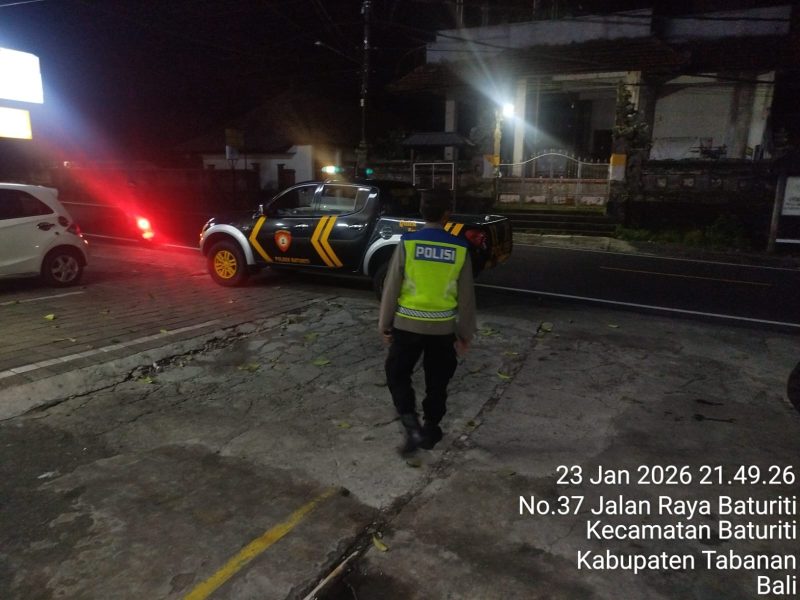 Polres Tabanan – Polsek Baturiti melaksanakan kegiatan KRYD dan Blue Light Patrol pada Jumat, 23 Januari 2026, pukul 21.00 s.d. 23.00 Wita di wilayah hukum Polsek Baturiti. Kegiatan dipimpin Pawas IPDA I Nyoman Sudila bersama personel piket fungsi menggunakan kendaraan patroli Kijang 903 Baturiti dengan menyasar pusat aktivitas masyarakat pada malam hari.