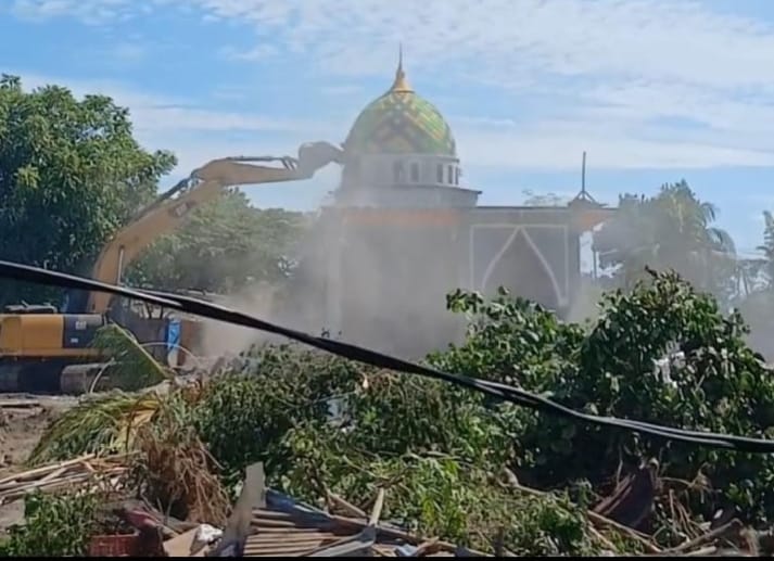 Masjid Al Mujahidin yang dibangun dari dana zakat melalui Baznas NTB turut dihancurkan pada pukul 15.00 WITA oleh dua unit eskavator.