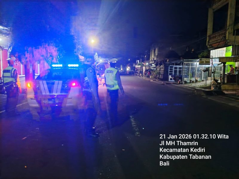 Rabu, 21-1-2026 pukul 00.20 s/d 02.00 wita personil Polsek Kediri yang dipimpin oleh Perwira Pengawas (Pawas) AKP I Ketut Bagiana, S.H. bersama piket fungsi melaksanakan BLP di Kawasan Pemukiman, SPBU Abiantuwung, ATM, Perbankan, Pemukiman Warga dan Supermarket serta obyek vital terutama yang ada pada jalur utama jalan A.Yani dan jln. Ir. Soekarno termasuk juga jalur selatan tepatnya by pass Nyanyi dalam menciptakan situasi Kamtibmas yang aman dan Kondusif.