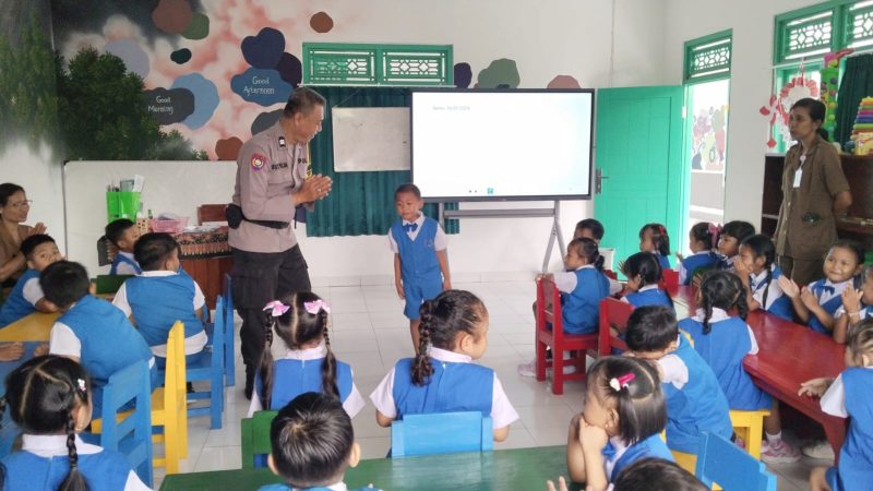 Klungkung – Dalam rangka program Polisi Sahabat Anak, Bhabinkamtibmas Desa Manduang Aiptu I Gusti Ngurah Puja mengisi kelas inspirasi kepada anak-anak TK Negeri Manduang, Desa Manduang, Kecamatan/Kabupaten Klungkung, Senin (26/1/2026) pagi.