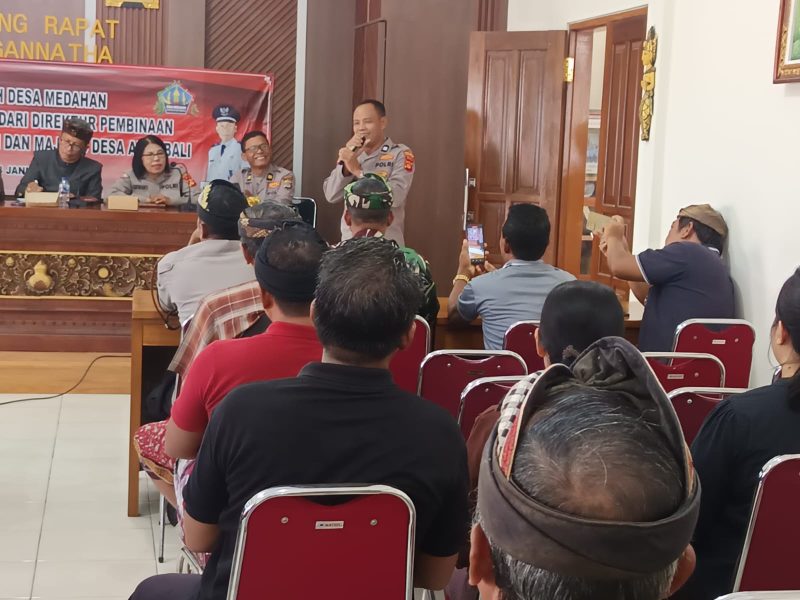 GIANYAR – Dalam rangka memperkuat sinergi Polri dengan masyarakat adat, Polres Gianyar melaksanakan kegiatan Polri untuk Masyarakat melalui Program Jumat Curhat/Orti Krama Bali, yang dirangkaikan dengan sosialisasi Sipandu Beradat, bertempat di Kantor Desa Medahan, Kecamatan Blahbatuh, Kabupaten Gianyar, Jumat (23/1/2026) pagi.