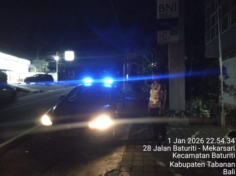 Polres Tabanan – Polsek Baturiti melaksanakan kegiatan KRYD dan Blue Light Patrol pada Kamis, 1 Januari 2026, mulai pukul 21.00 Wita hingga 23.00 Wita. Kegiatan ini dilaksanakan sebagai langkah antisipasi untuk menjaga stabilitas keamanan dan ketertiban masyarakat di wilayah hukum Polsek Baturiti, khususnya pada momentum awal tahun yang ditandai dengan meningkatnya aktivitas masyarakat pada malam hari.