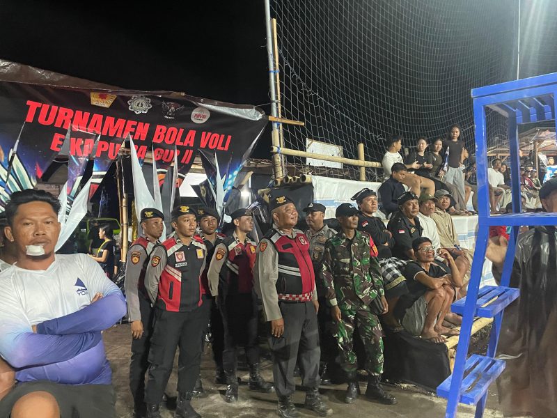 Polres Klungkunh — Bhabinkamtibmas Desa Batununggul Polsek Nusa Penida Aiptu Dewa Susila Dharma bersama personel Samapta Polsek Nusa Penida bersinergi dengan Pecalang Desa Adat Batumulapan melaksanakan pengamanan Turnamen Bola Voli Eka Putra Cup II yang berlangsung di lapangan bola voli Dusun Batumulapan, Desa Batununggul, Kecamatan Nusa Penida, Kabupaten Klungkung, (22/1).