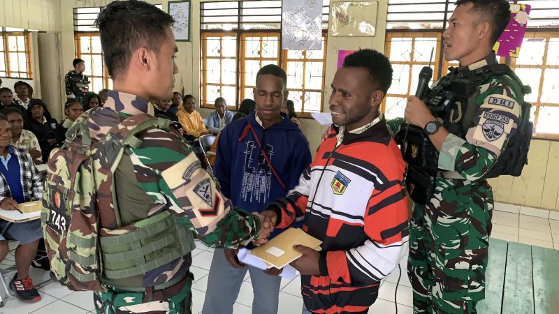 Danpos Wuyuneri, Letda Inf Fariz Tamonob, menyampaikan bahwa kegiatan ini merupakan wujud nyata komitmen Satgas dalam mendukung dunia pendidikan di wilayah penugasan.
