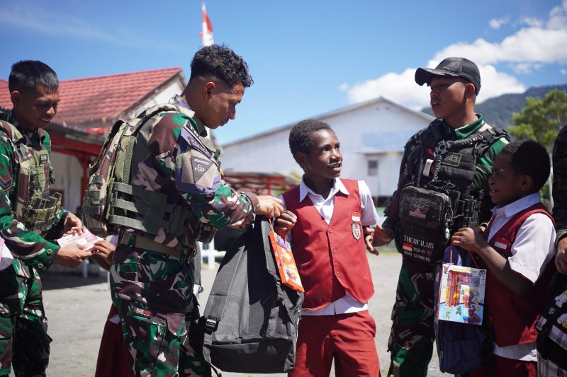 Satgas Yonif 743/PSY Tebar Harapan Pendidikan Lewat Perlengkapan Sekolah untuk Anak-anak Papua