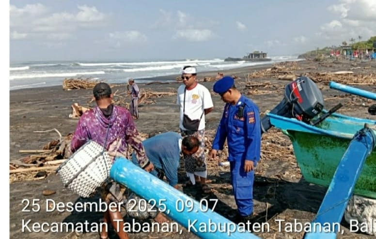 Tabanan. Personel Satuan Polairud Polres Tabanan melaksanakan patroli pesisir dan sambang pantai di kawasan Pantai Yeh Gangga, Kamis (25/12/2025) pagi. Kegiatan yang dimulai pukul 10.00 WITA ini dilakukan sebagai upaya menjaga situasi keamanan dan ketertiban masyarakat (kamtibmas), khususnya di kawasan wisata pesisir yang ramai dikunjungi masyarakat dan wisatawan pada momen Hari Raya Natal.