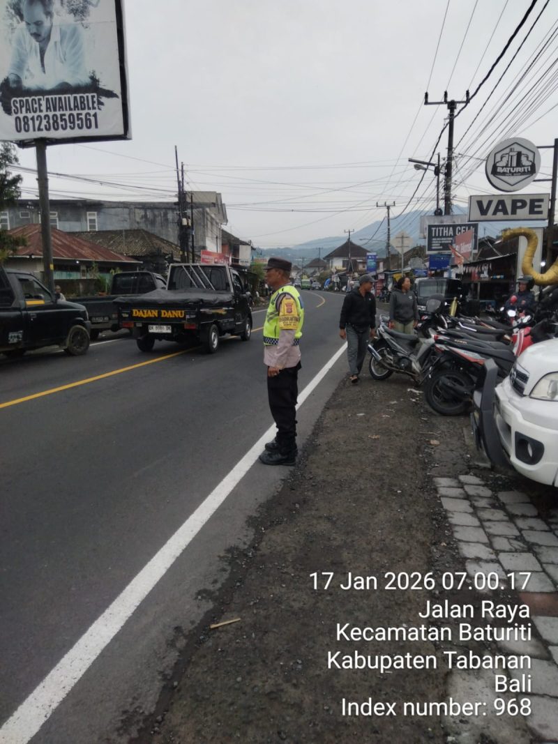 Polres Tabanan – Polsek Baturiti melaksanakan kegiatan strong point pagi pada Sabtu, 17 Januari 2025 bertempat di Simpang Pasar Baturiti. Kegiatan ini melibatkan tiga personel, yaitu dua personil piket dan Aipda I Wayan Sueca, yang ditugaskan untuk memastikan kelancaran arus lalu lintas serta memberikan rasa aman bagi masyarakat yang melaksanakan aktivitas pagi di kawasan pasar.