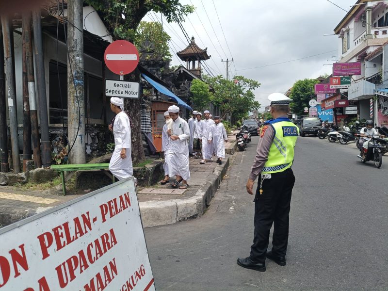 Kapolsek Klungkung Kompol I Wayan Sujana, S.H., M.M. menyampaikan bahwa pengamanan dan pengaturan lalu lintas saat kegiatan ibadah rutin merupakan bagian dari tugas Polri dalam menjaga ketertiban dan keselamatan masyarakat.